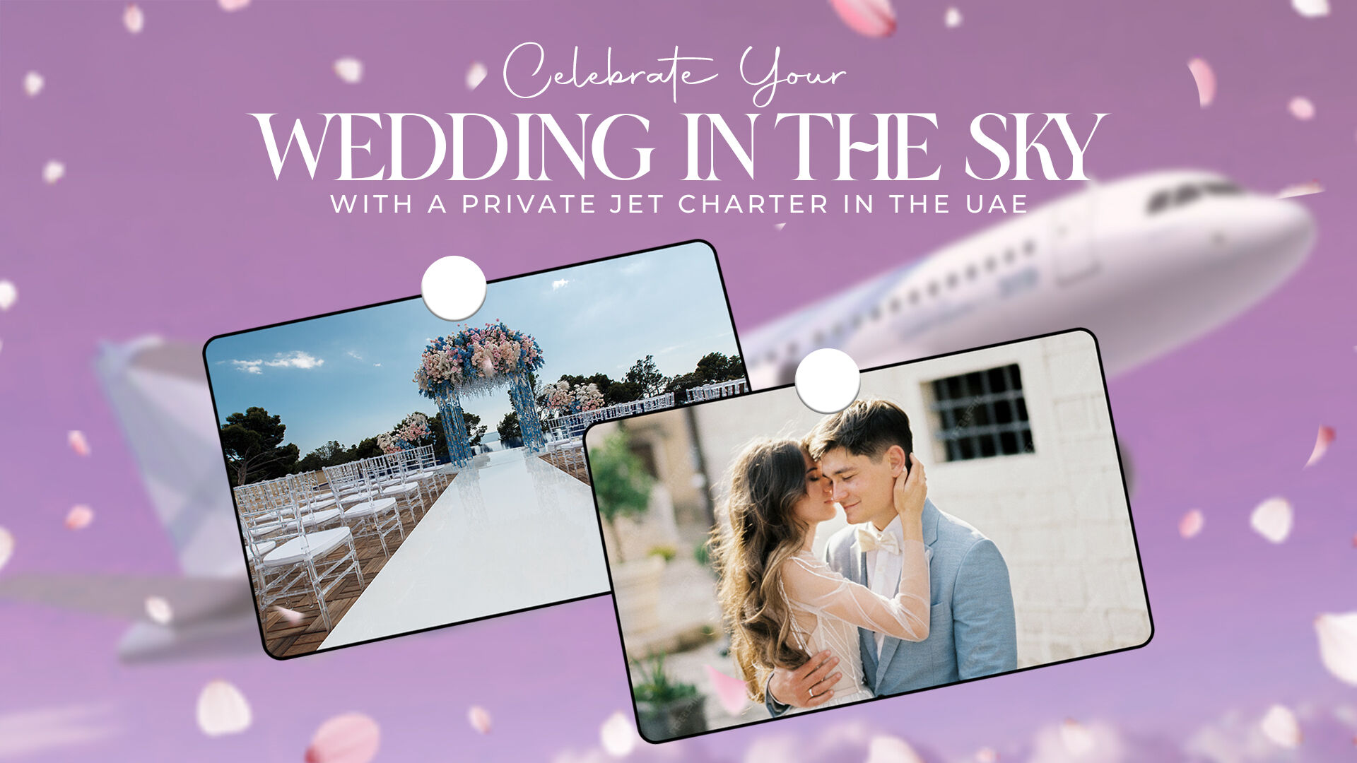 Imagine standing beside your partner mid-air, the soft hum of a luxury private jet surrounding you, the sun casting golden light over Dubai’s skyline, or the endless desert dunes below. Your closest family and friends are with you, enjoying fine dining, soft floral arrangements, and your favorite music. You exchange vows, clink champagne glasses, and capture cinematic memories from above the clouds.